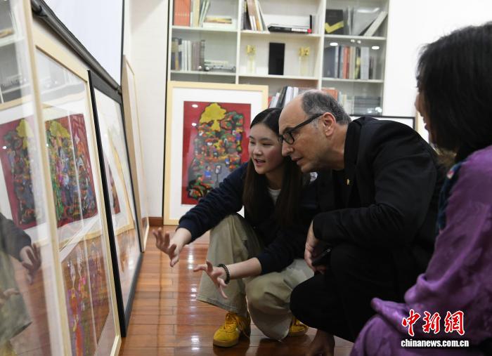 图为沉庆綦江农人版绘吸收匈牙利艺术家图兹紧·贝采利·彼得浏览。中新社记者 周毅 摄